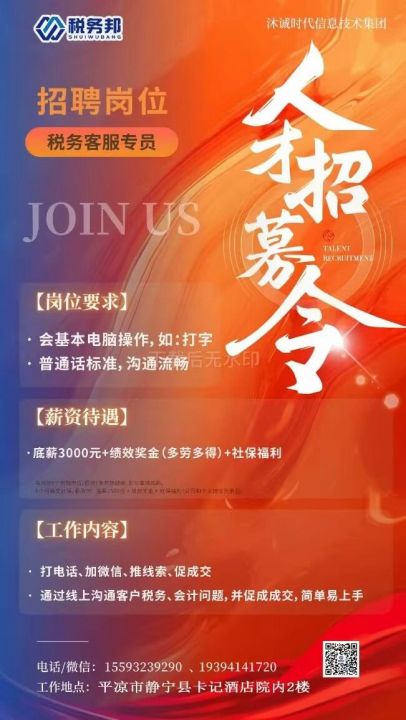 静宁公司招聘每天8小时,周末双休节假日带薪休假底薪3000入职满6个月交社保...